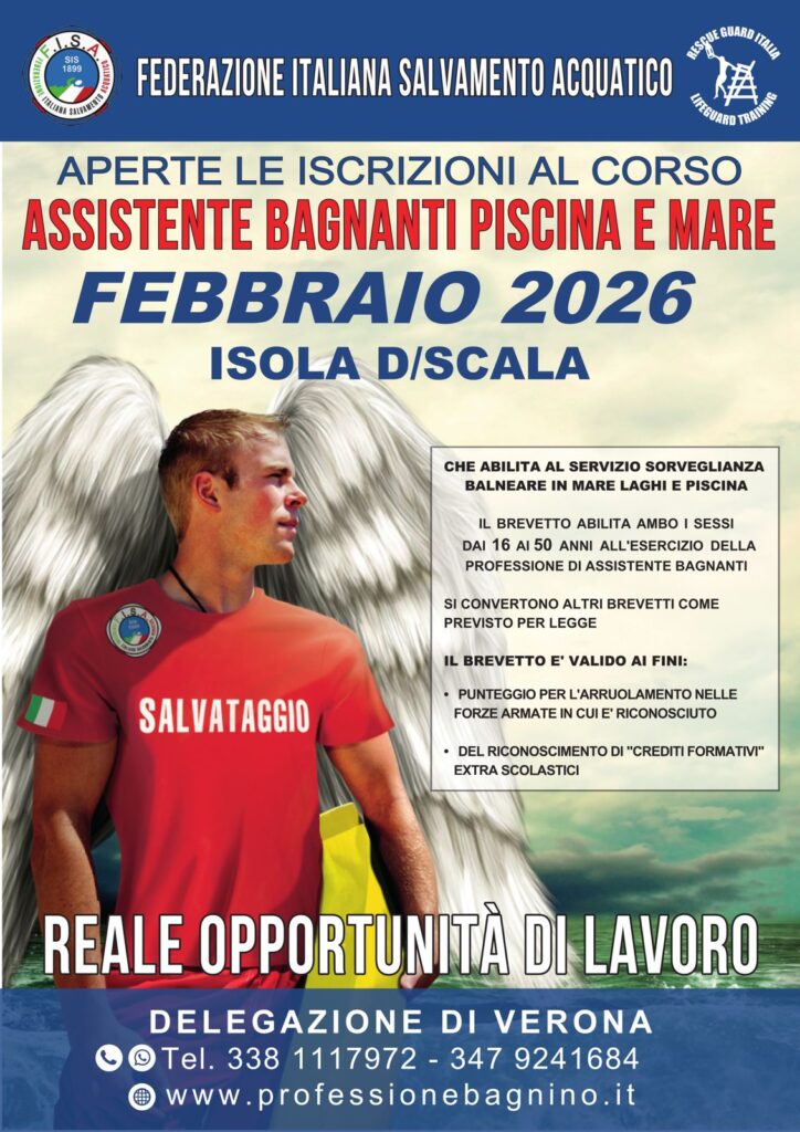 A febbraio 2026 avrà inizio, presso il nostro impianto, il corso per conseguire il brevetto professionale di assistente bagnanti piscina e mare F.I.S.A.