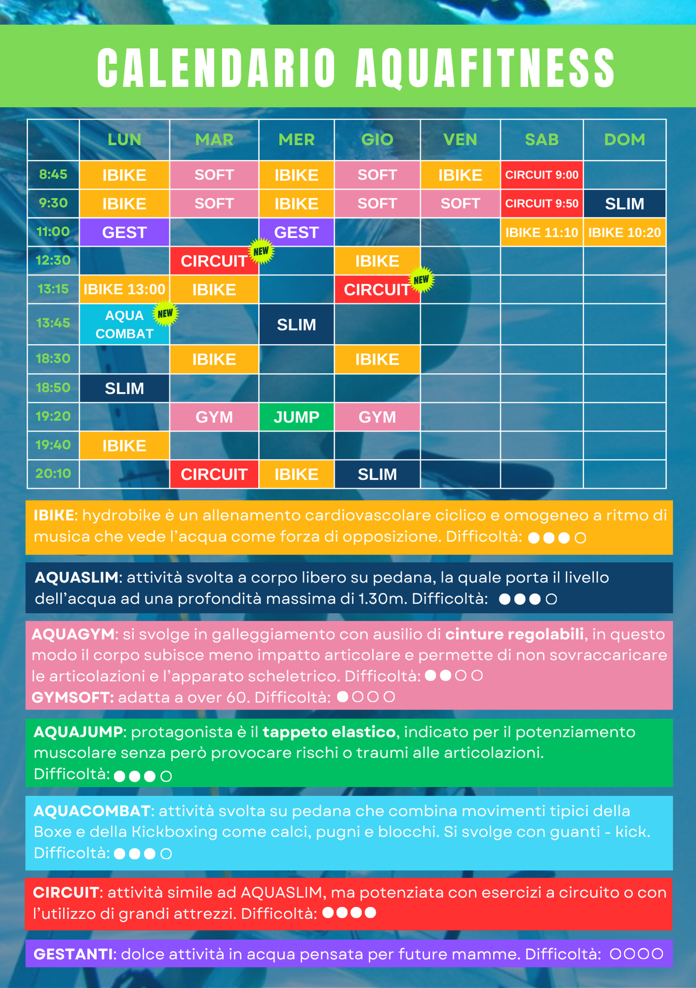 Similare all’acquaslim, ma prevede un allenamento a stazioni con piccoli attrezzi (smile, tubi, manubri…) oppure grandi attrezzi (bike, jump, step).